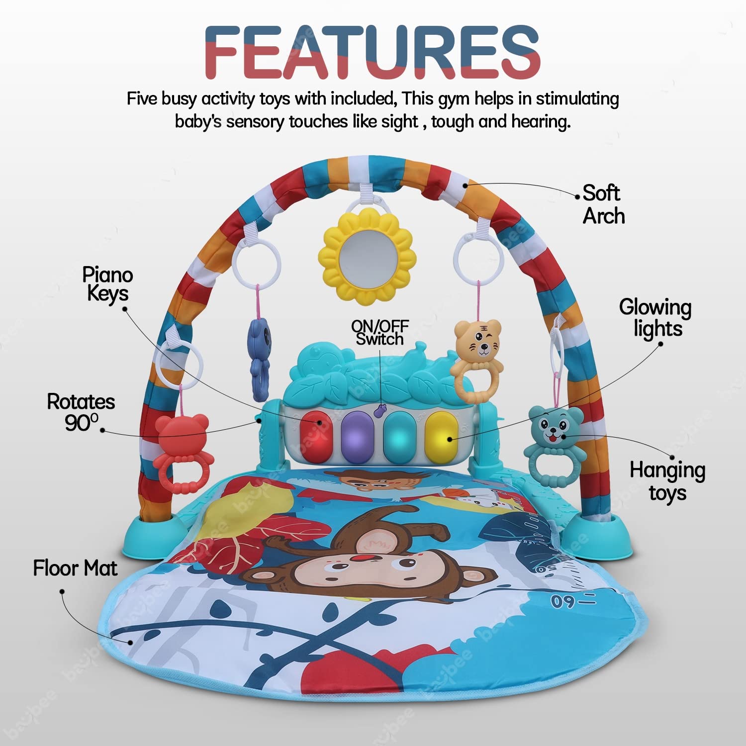 • 【Soft and Durable Material】: Play Gym mat for babies is more durable and you will feel the value of it. The play mat activity gym for infants is made of organic and skin-friendly material, which is soft and comfortable, BPA-free and non-toxic, as well as provides safe play time and tummy time for babies