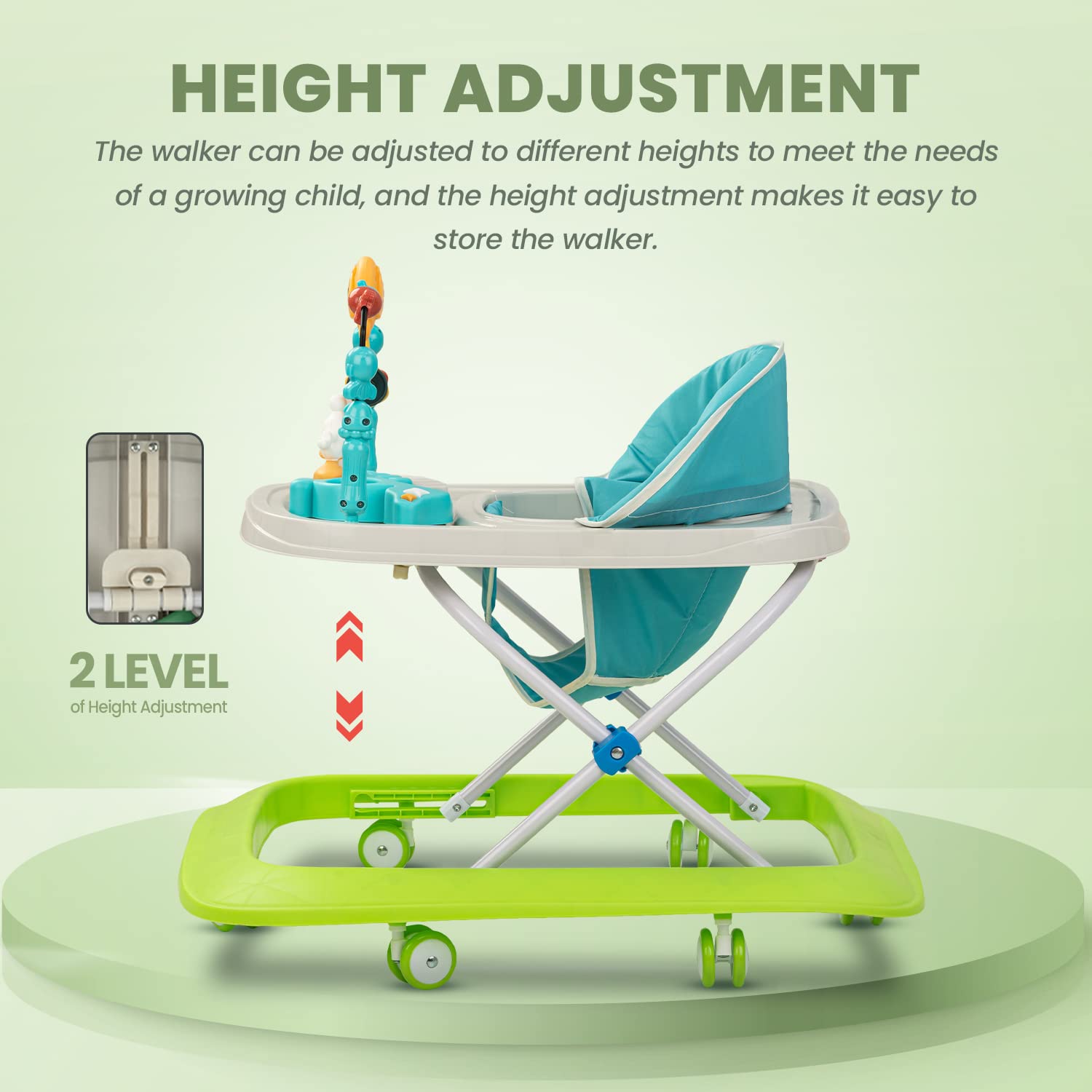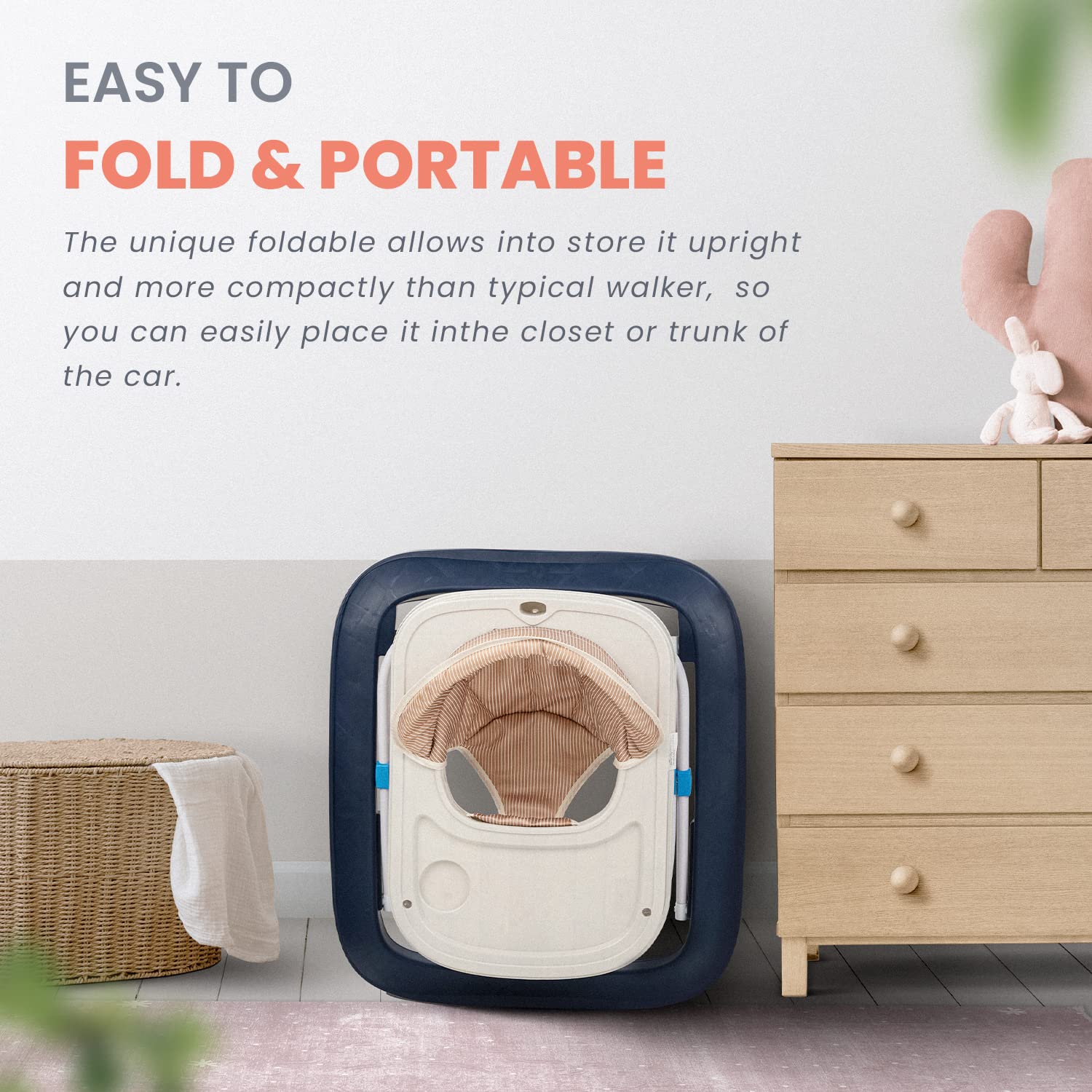 - [Easy to Fold and Carry] – The foldability of the baby walker makes carrying easier, it comes with a removable seat cover, musical toy bar so it is very convenient to fold and unfold, it does not take up too much space when not in use.