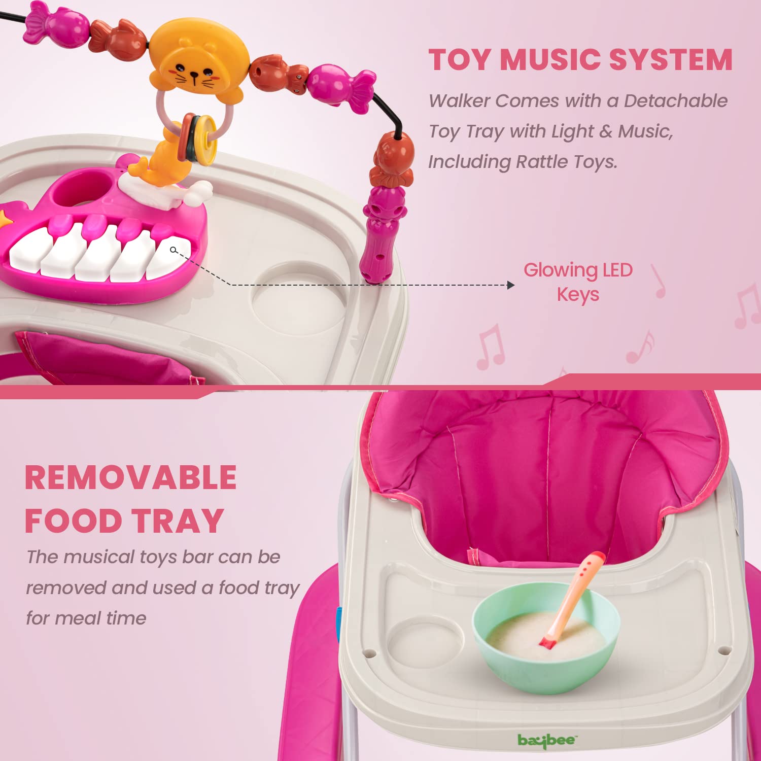 - [Removeable Musical Toy Bar] – The walker for baby comes with removeable musical with musical toy bar rattle so your baby walking with walker will love to play with toys and music without getting bored and engaged for long time with walker. The musical toys bar can be removed and used a food tray for meal time