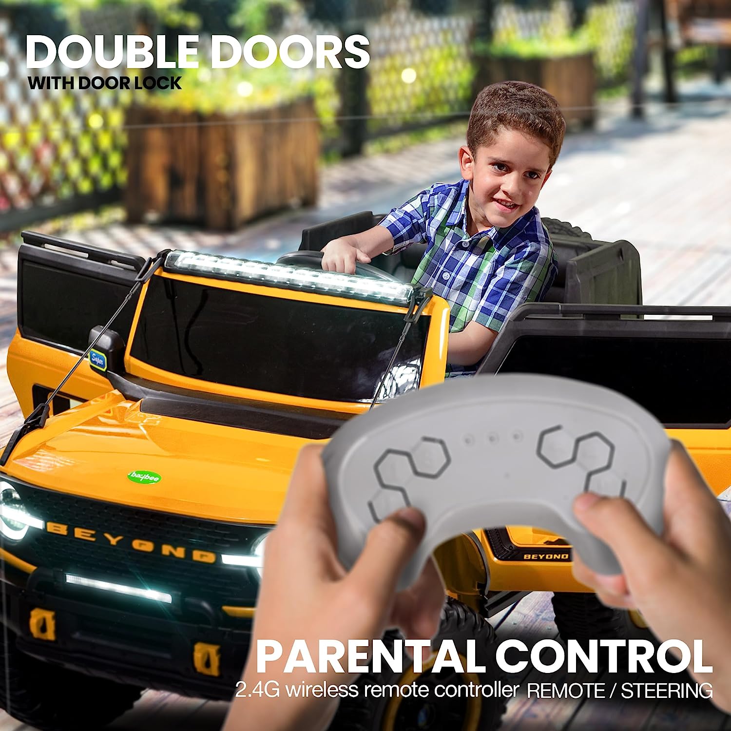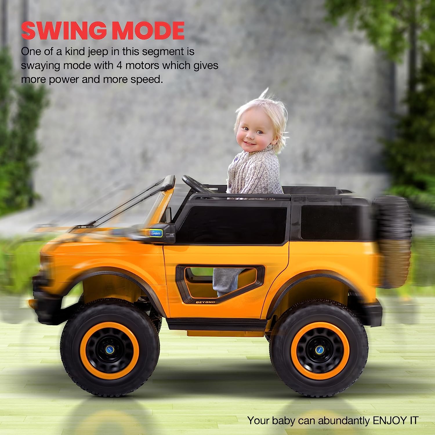 - [Dual Mode Electric Car] The battery-operated car can be controlled by dual control modes. Parents can help their children manage this jeep with a 2.4G wireless remote controller or baby can operate this car by himself/herself by stepping on the accelerator, turning the steering wheel, and shifting the forward/backward moving mode, your kids will practice hand-eye-foot coordination, enhance courage, and build confidence through this beautiful vehicle