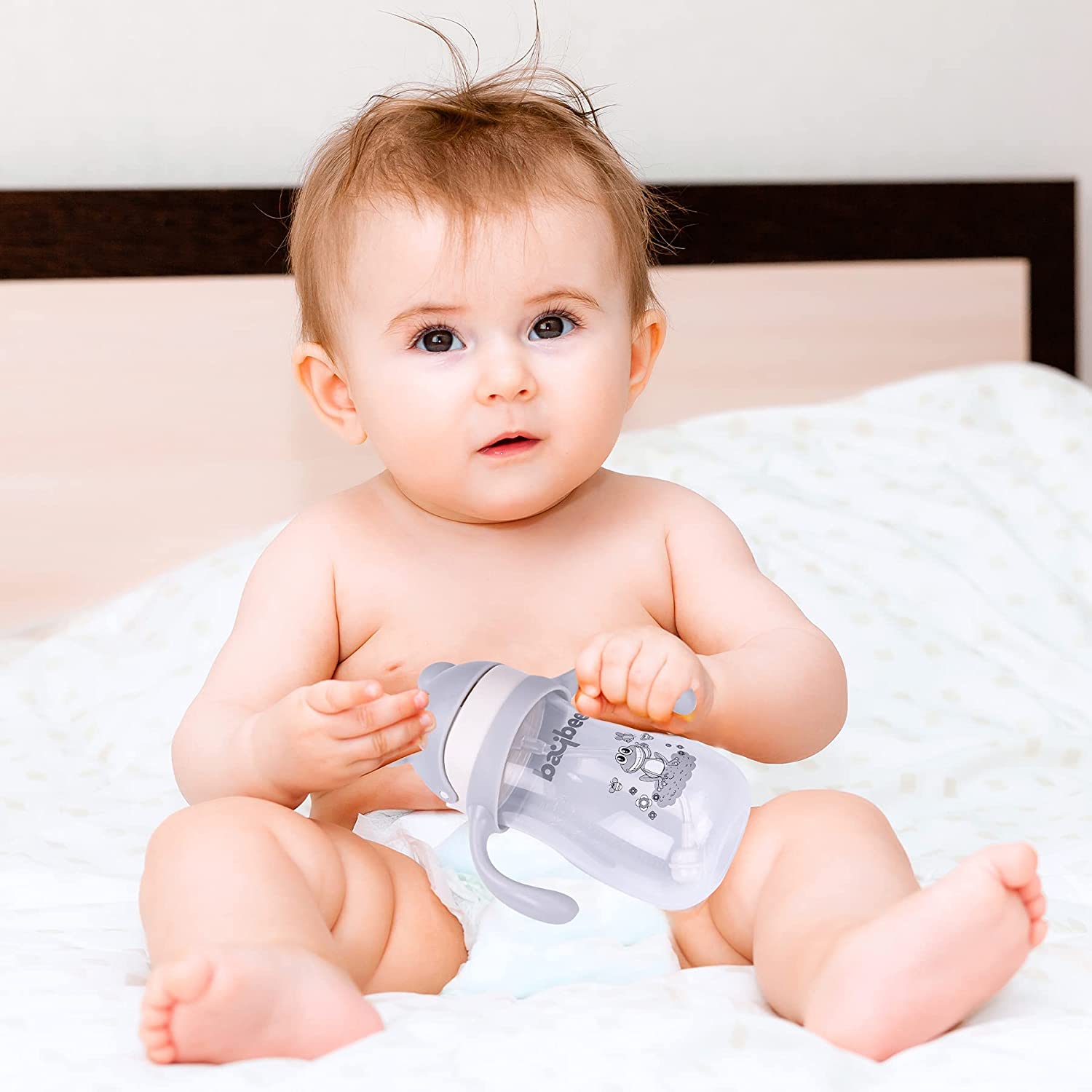 - Child can independently drink liquids from spout cup by holding it from both the sides by the smooth handles.