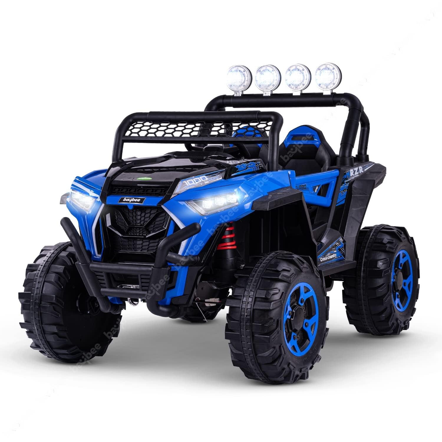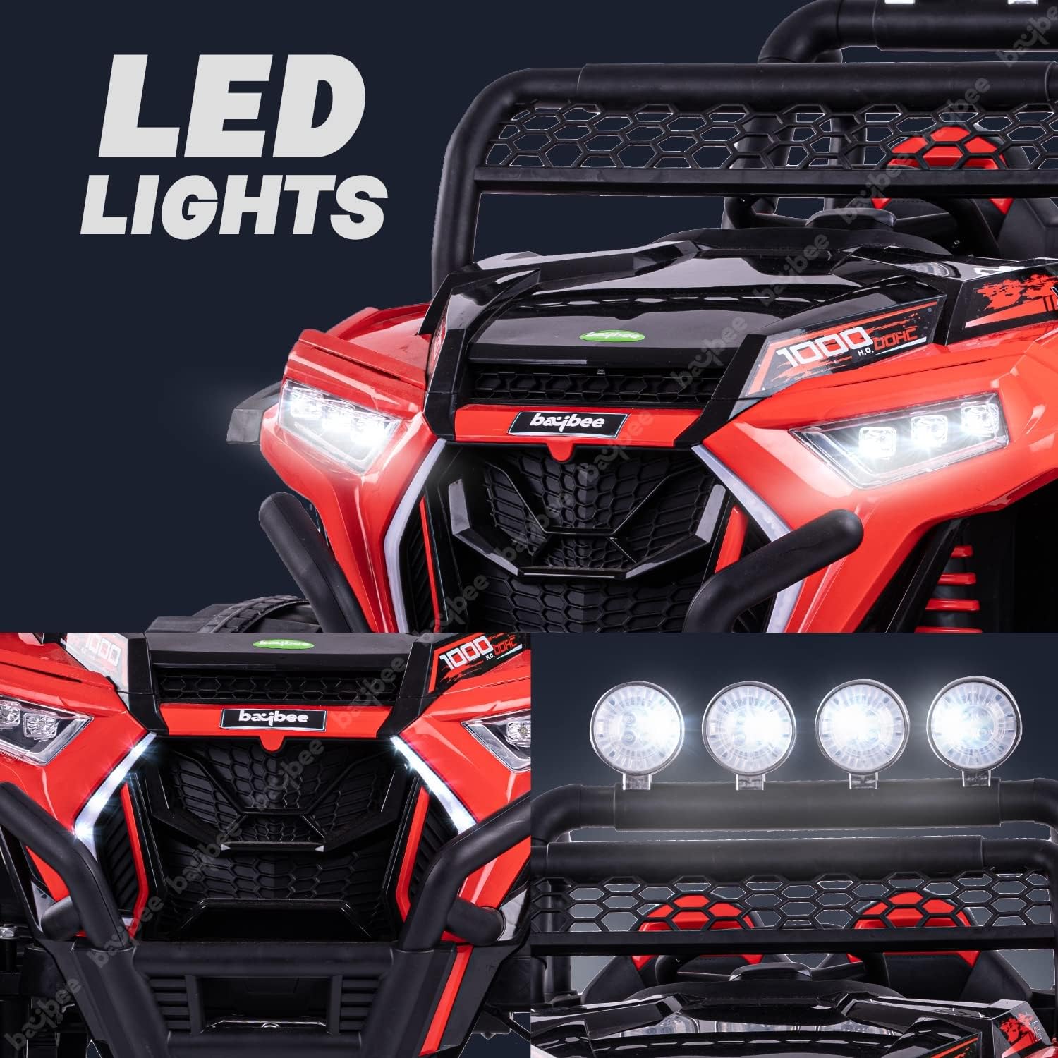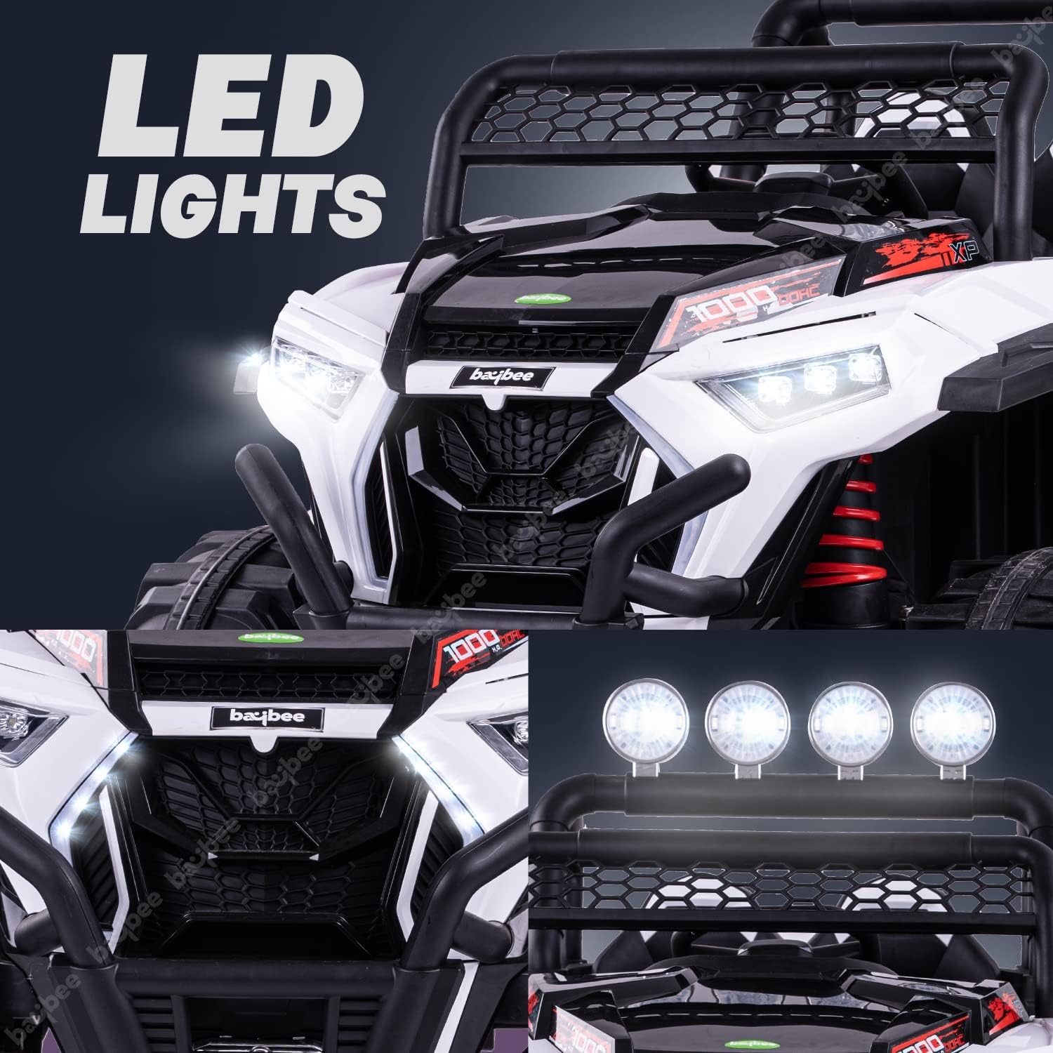 [Safe Driving Features for Peace of Mind] Engineered for safety, the battery-operated jeep boasts a powerful engine with a slow start for safer use. Bright LED lights on the front and back enable safe night-time driving, and the steering wheel is designed to slightly change the car's direction, preventing accidental overturning and ensuring a secure play environment.