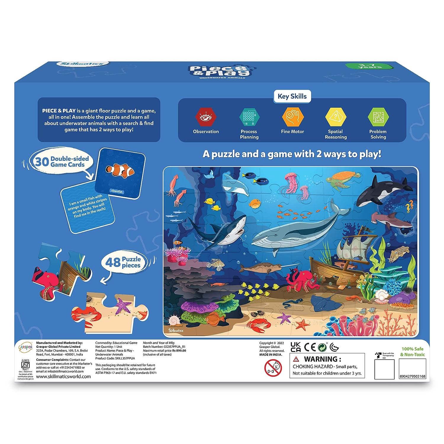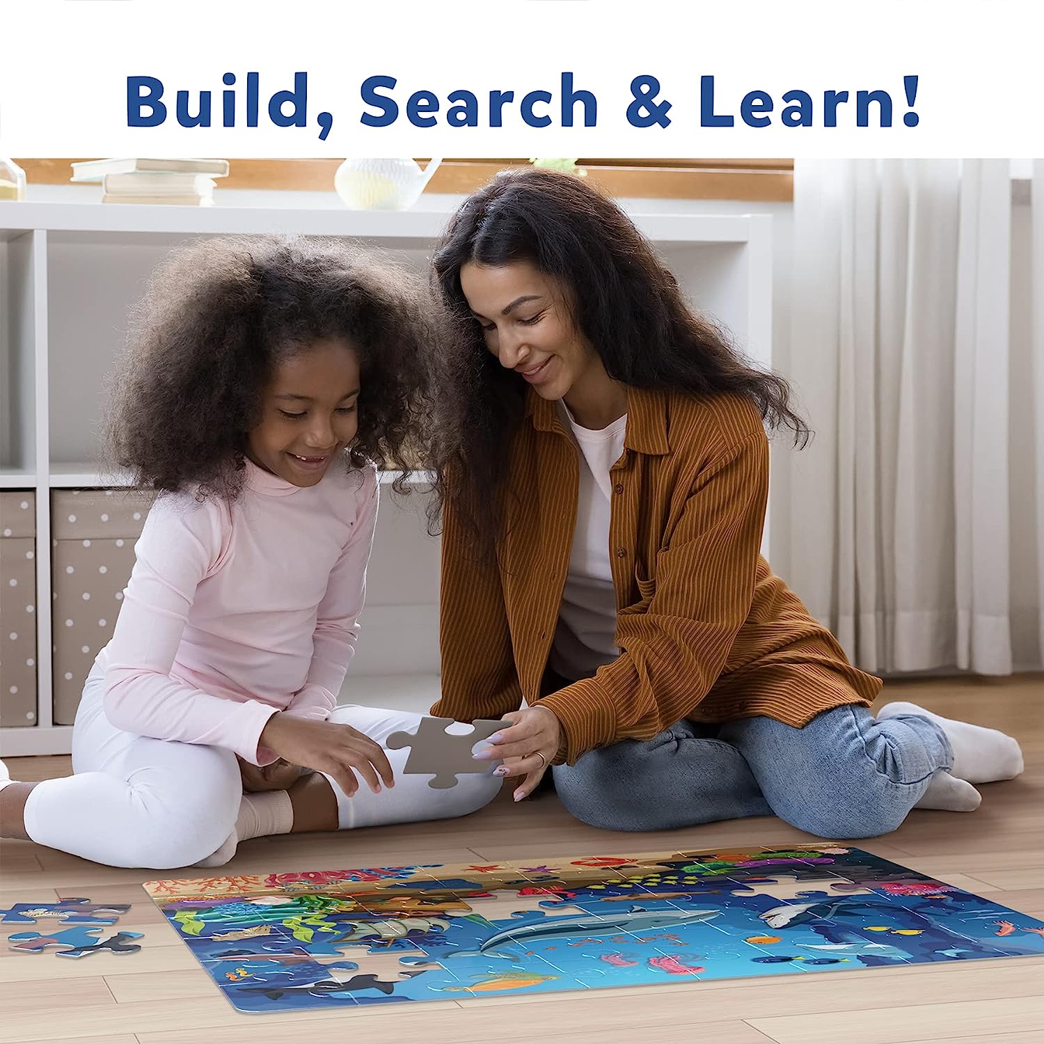- FLOOR PUZZLE & GAME - Piece & Play is a giant floor puzzle and a game, all in one! Assemble the puzzle and learn all about underwater animals with a search & find game that has 2 ways to play!